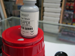 Next on the agenda is the Valego Game Color Silver. I shook the bejeezus out of the bottle, knowing from previous experience that the color tends to separate easily. Even after a LOT of shaking, the paint was obviously and definitely thin when it came out of the bottle.