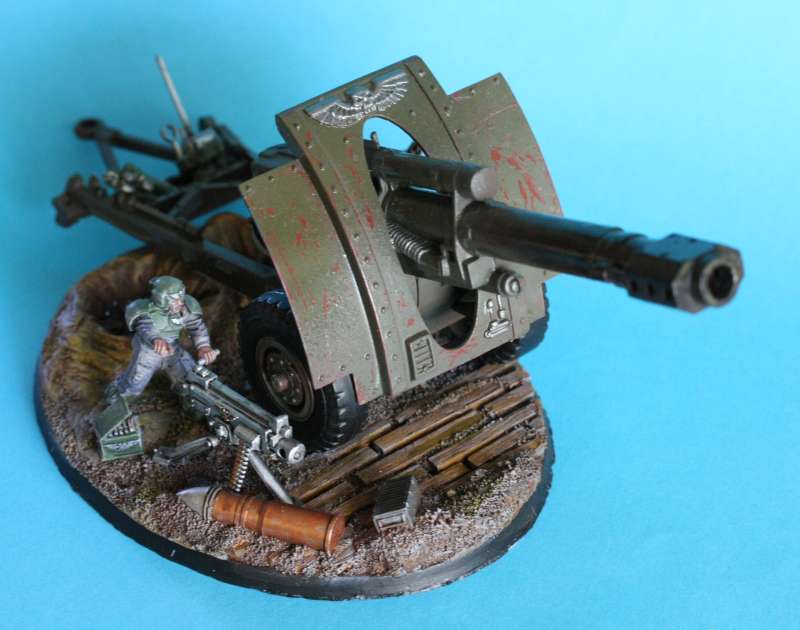 The conversion on this one was really easy. I tracked down a Basilisk armored front which fit on after a bit of tweaking, and extended the barrel with a Russ Nova Cannon. Then it was just a case of adding some atmosphere pieces such as a crew to the base and I'm done. The base I found is a thing of beauty. The Secret Weapon Trenchworks base that you can find here. It was the perfect fit for what I wanted to do with this.
